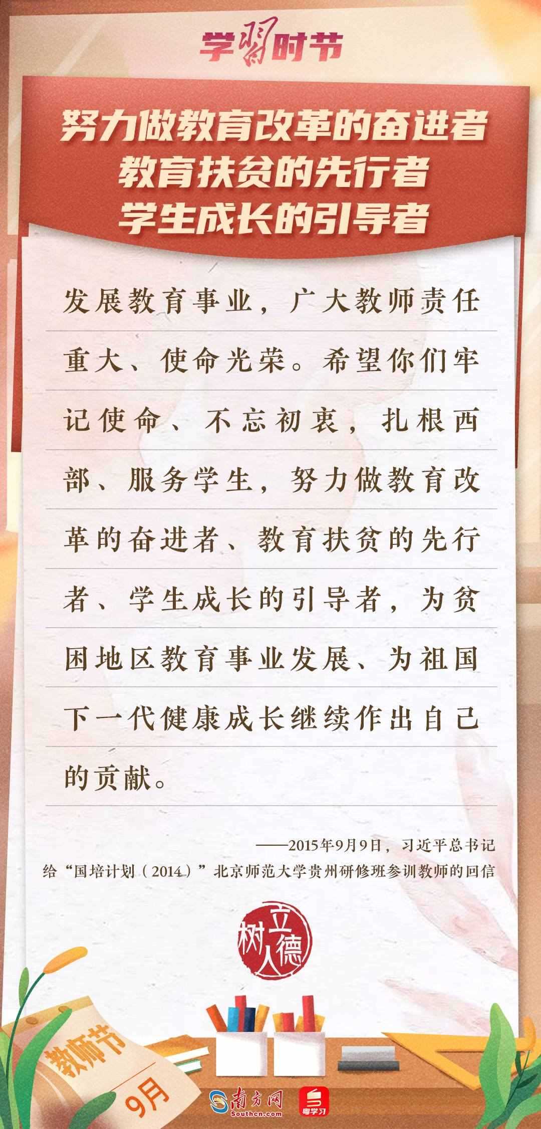 “百年大計(jì),教育為本。教育大計(jì),教師為本?!秉h的十八大以來,習(xí)近平總書記多次以書信形式向教師群體和教育工作者表達(dá)囑托與期望,諄諄話語,催人奮進(jìn)。在第四十個(gè)教師節(jié)到來之際,讓我們一起重溫總書記的諄諄寄語!
