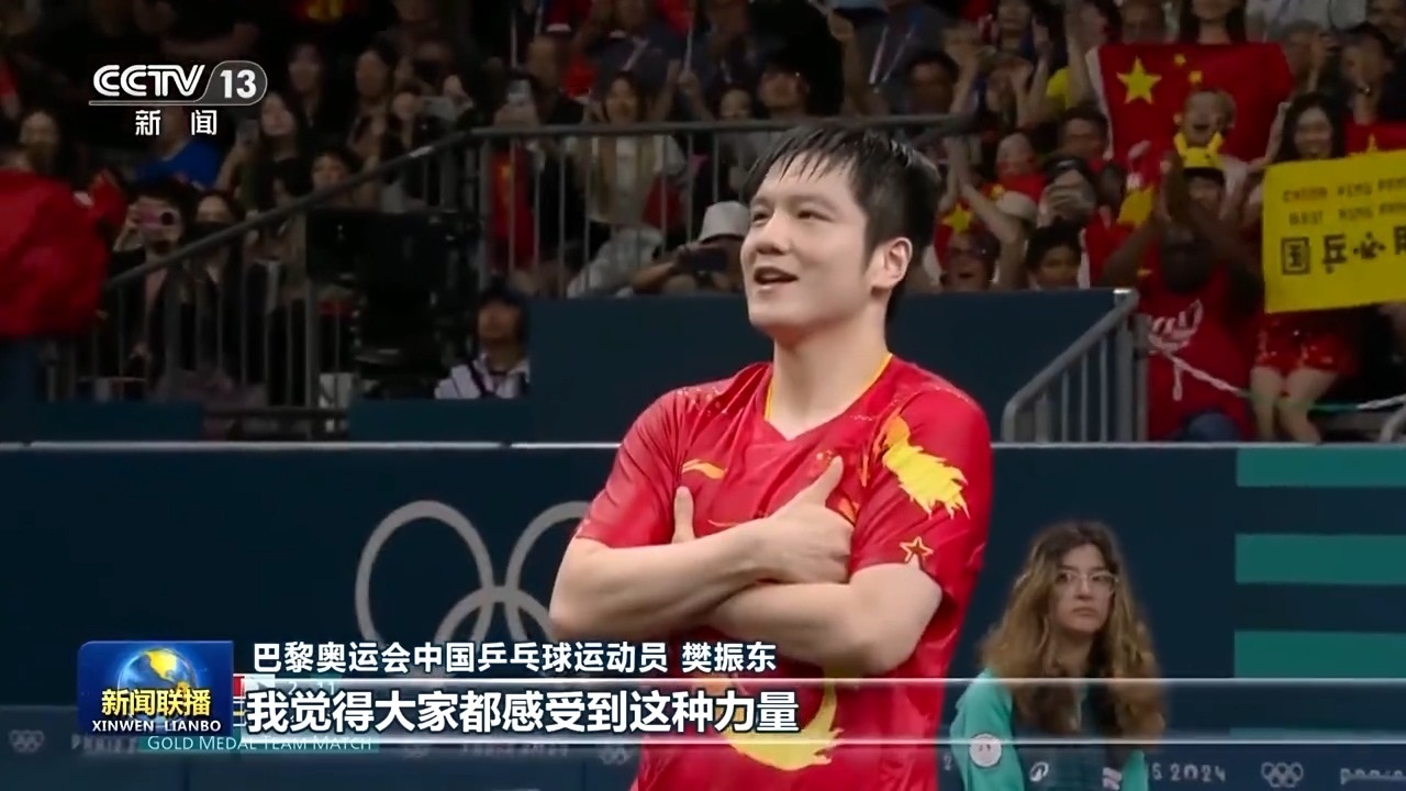 巴黎奧運會中國乒乓球運動員 樊振東:能夠受到總書記的接見,我覺得是非常至高無上的榮幸。里約奧運會跟東京奧運會結(jié)束以后,也都有幸參與總書記的接見,總書記每一次都非常親切。我覺得無時無刻不感受到總書記對體育、對我們中國代表團的這種重視跟關(guān)心,我覺得大家都感受到這種力量。