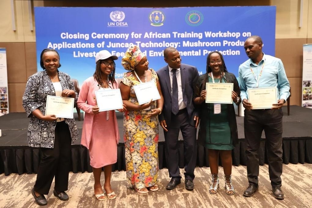 8月初,在非洲地區(qū)菌草技術(shù)培訓(xùn)班舉辦期間,聯(lián)合國官員和使團(tuán)代表團(tuán)專程赴盧旺達(dá)考察菌草技術(shù)和產(chǎn)業(yè)在非洲地區(qū)的發(fā)展?!拔液芨吲d同其他聯(lián)合國官員一起,親眼見證菌草技術(shù)以實(shí)際行動(dòng)造福民眾?!甭?lián)合國秘書長(zhǎng)辦公室主任考特尼·拉特雷說,菌草技術(shù)具有“可負(fù)擔(dān)”的突出優(yōu)勢(shì),“對(duì)非洲大陸所有發(fā)展中國家很有價(jià)值、非常適用”。