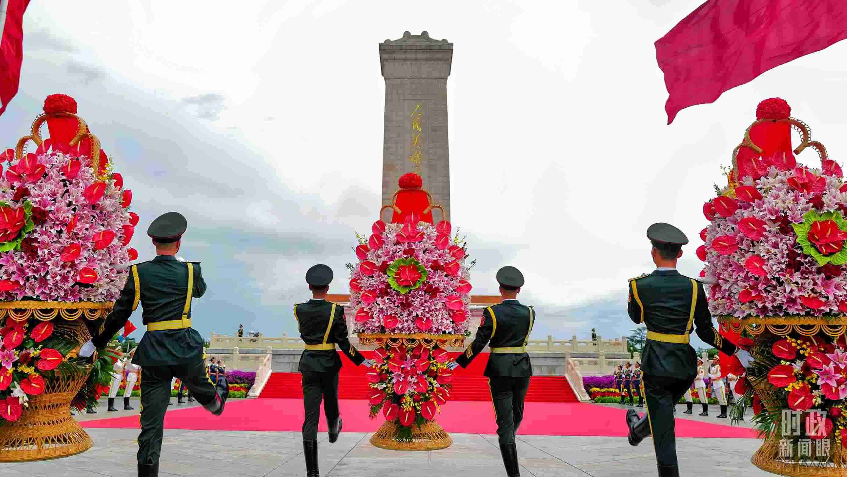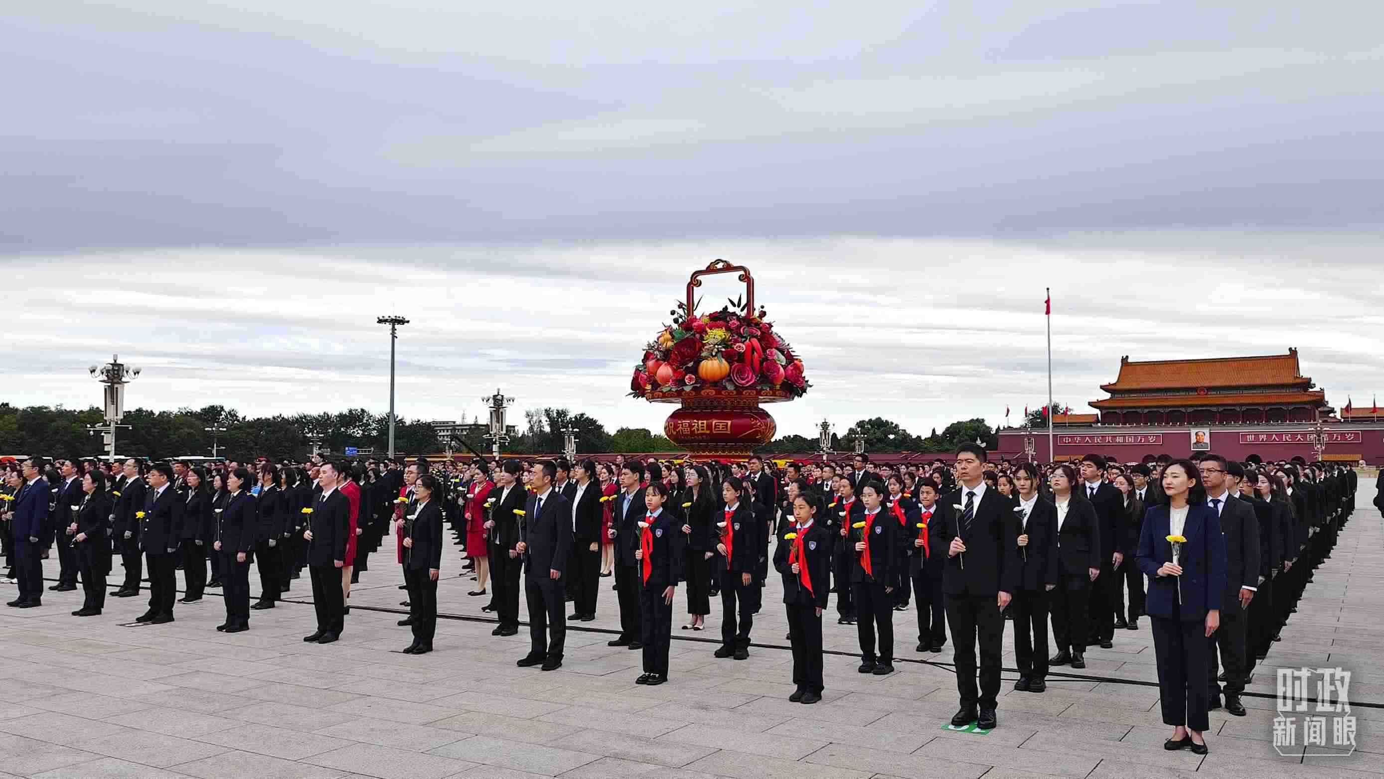 正逢新中國成立75周年,今年參加儀式的人數(shù)規(guī)模有所增加?!稌r(shí)政新聞眼》現(xiàn)場了解到,相較去年,人民英雄紀(jì)念碑基座上增加了4名禮兵。今年參加儀式的各界代表增至2400多名。