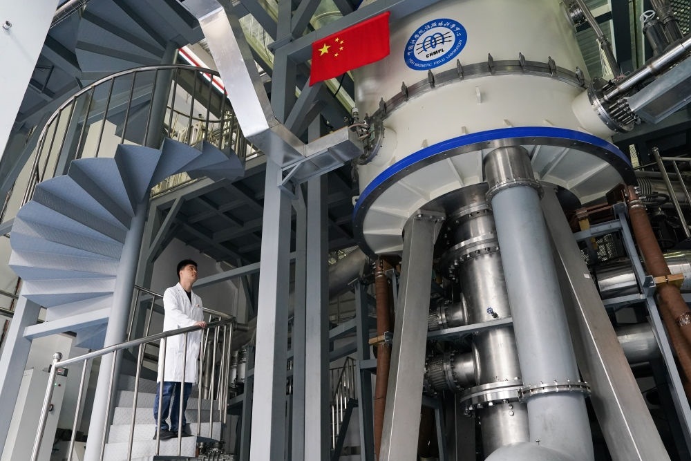這是在中國科學(xué)院合肥物質(zhì)科學(xué)研究院強(qiáng)磁場科學(xué)中心拍攝的國家重大科技基礎(chǔ)設(shè)施“穩(wěn)態(tài)強(qiáng)磁場實(shí)驗(yàn)裝置”混合磁體(2022年10月17日攝)。