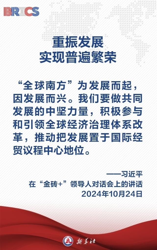 當?shù)貢r間10月24日上午,國家主席習近平在喀山會展中心出席“金磚+”領(lǐng)導人對話會并發(fā)表題為《匯聚“全球南方”磅礴力量 共同推動構(gòu)建人類命運共同體》的重要講話,闡明中國主張——
