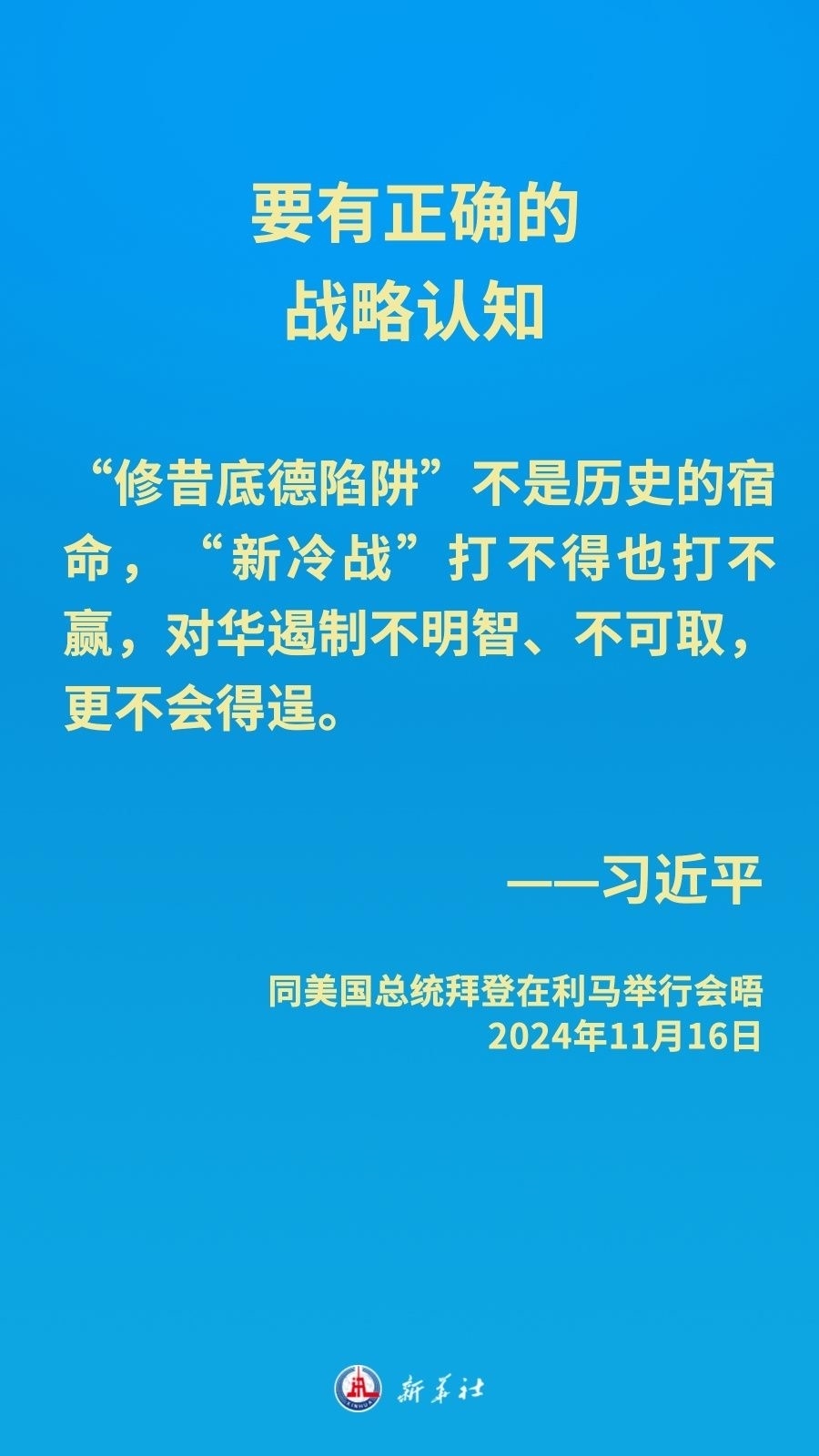 當(dāng)?shù)貢r(shí)間11月16日下午,習(xí)近平主席在秘魯利馬出席亞太經(jīng)合組織領(lǐng)導(dǎo)人非正式會(huì)議期間應(yīng)約同美國總統(tǒng)拜登舉行會(huì)晤。就中美關(guān)系發(fā)展,習(xí)近平主席闡明中方立場(chǎng)——