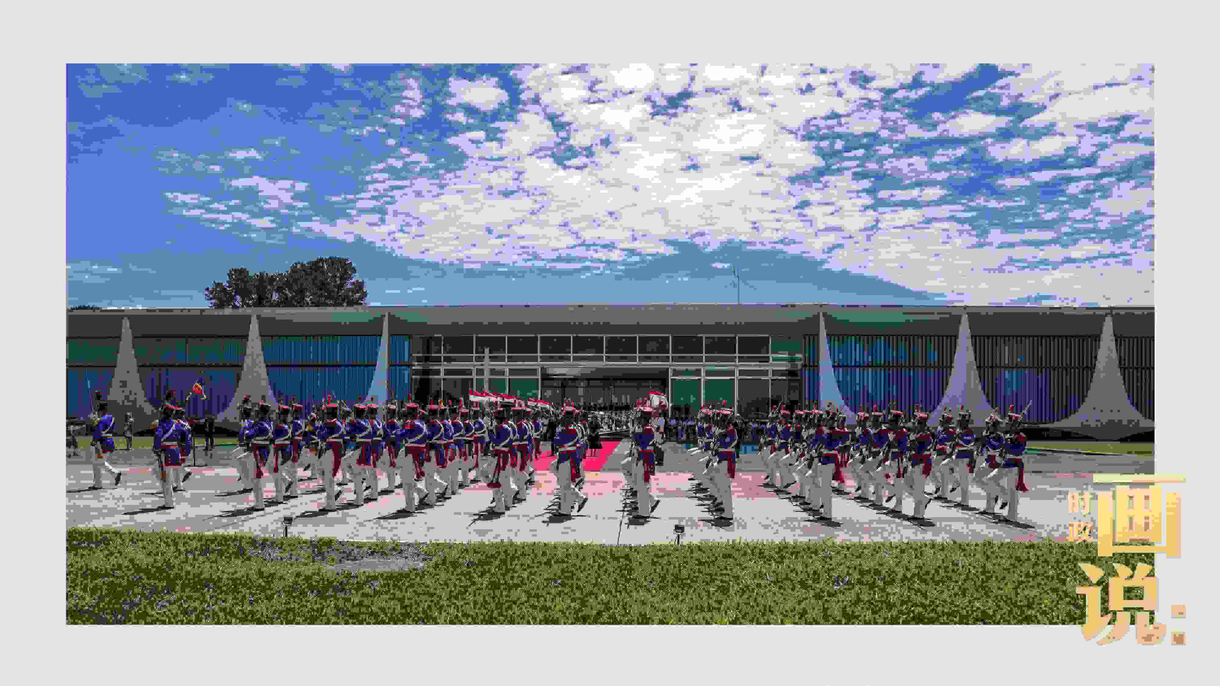 騎兵護衛(wèi)習(xí)近平主席專車抵達(dá)儀式現(xiàn)場,巴西藝術(shù)家用中文深情唱響中國經(jīng)典民歌《我的祖國》,現(xiàn)場氣氛隆重?zé)崃摇?/p>