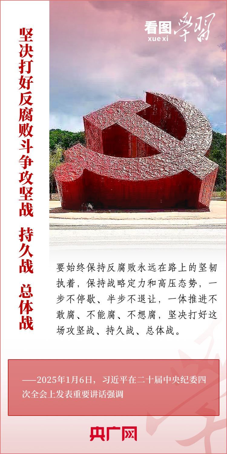 1月6日,習近平總書記在二十屆中央紀委四次全會上發(fā)表重要講話,充分肯定過去一年全面從嚴治黨取得的新進展、新成效,深刻分析當前反腐敗斗爭形勢,對堅決打好反腐敗斗爭攻堅戰(zhàn)、持久戰(zhàn)、總體戰(zhàn)提出明確要求??倳洀娬{,新時代新征程,必須堅持用改革精神和嚴的標準管黨治黨,努力取得更大成效,確保黨的二十大和二十屆三中全會部署落地落實,確保黨始終成為中國特色社會主義事業(yè)的堅強領導核心,推動中國式現(xiàn)代化行穩(wěn)致遠。一起來學習!