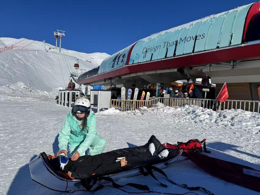 一次巡邏時(shí),帕提曼看到一名雪友橫躺在雪道中間,雪板被甩出很遠(yuǎn),上前查看后發(fā)現(xiàn)其大腿骨折。她立即進(jìn)行夾板固定、紗布包扎等操作,隨后協(xié)助轉(zhuǎn)運(yùn)傷員。