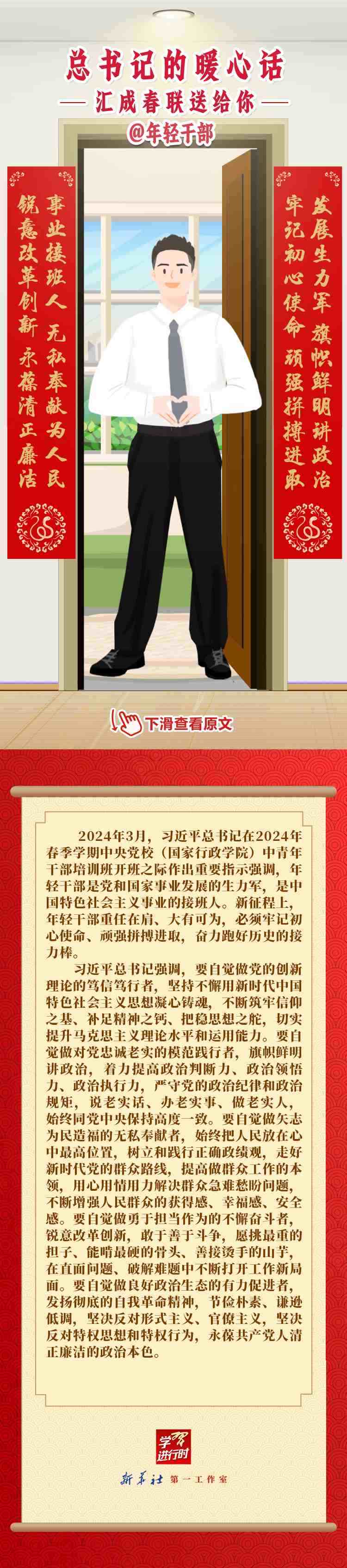 【學習進行時】過春節(jié),貼春聯(lián),寄托人們對新年的美好愿望。過去一年,習近平總書記在不同場合點贊各行各業(yè)奮斗者,說了許多暖心話。新春之際,我們匯編成聯(lián),向新征程上的每一位“主角”致敬,送上新春的祝福。