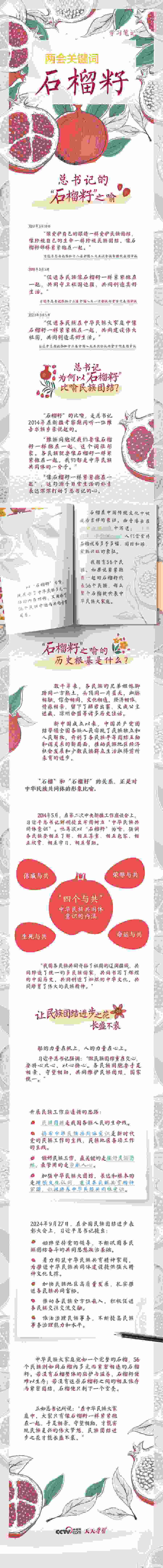 我國是統(tǒng)一的多民族國家,中華民族多元一體是我國的一個(gè)顯著特征。習(xí)近平總書記在兩會(huì)期間多次用“石榴籽”比喻民族團(tuán)結(jié)。