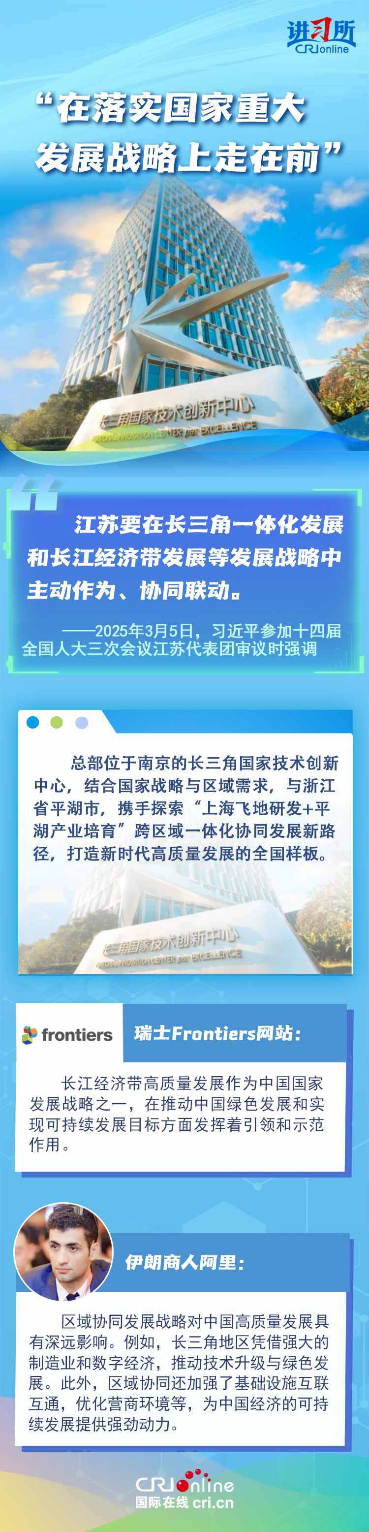 從紫金山實驗室的6G突破到蘇州工業(yè)園區(qū)的開放升級,從長三角協(xié)同創(chuàng)新到永聯(lián)村的共富實踐,江蘇在中國式現(xiàn)代化新實踐上已成為世界觀察中國高質量發(fā)展的重要窗口。國際人士認為,中國因地制宜的創(chuàng)新發(fā)展之路有力推動了國家現(xiàn)代化進程與民生福祉提升。