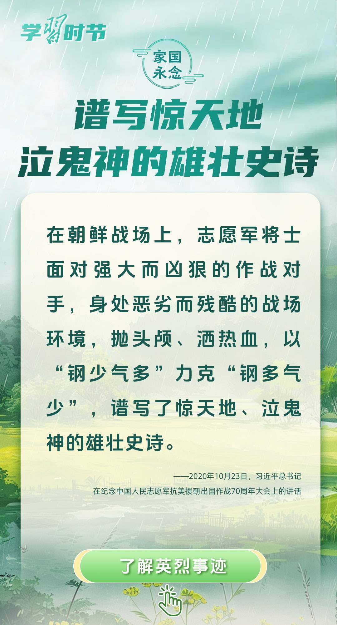 今年是中國人民抗日戰(zhàn)爭暨世界反法西斯戰(zhàn)爭勝利80周年、中國人民志愿軍抗美援朝出國作戰(zhàn)75周年。習(xí)近平總書記曾說:“對一切為國家、為民族、為和平付出寶貴生命的人們,不管時代怎樣變化,我們都要永遠銘記他們的犧牲和奉獻?!苯裉煳覀兯鶕碛械囊磺?,無不凝結(jié)著英雄、英烈們的奉獻付出乃至巨大犧牲。