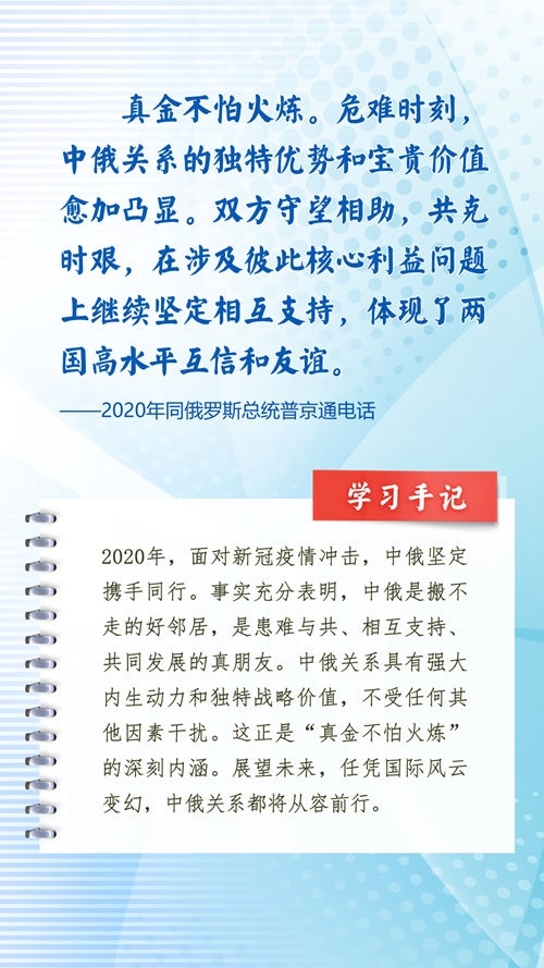 我們一起來學習品讀這些飽含哲思的論述,從中感悟新時代中俄關系在復雜的外部環(huán)境下堅毅前行之道,感悟習近平主席作為大黨大國領袖、世界級領袖的時代擔當與天下情懷。