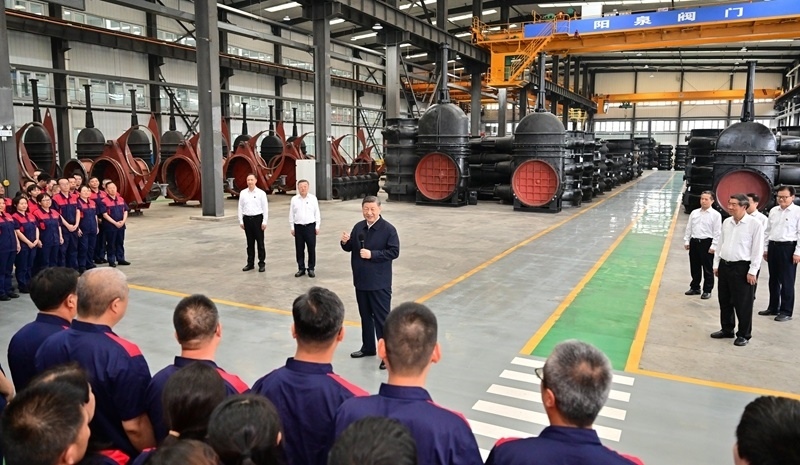 7月7日至8日,中共中央總書記、國(guó)家主席、中央軍委主席習(xí)近平在山西考察。這是7日下午,習(xí)近平在陽(yáng)泉閥門股份有限公司考察。