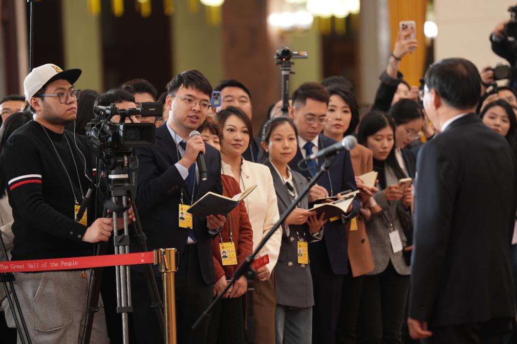 3月5日,第十四屆全國(guó)人民代表大會(huì)第四次會(huì)議首場(chǎng)“部長(zhǎng)通道”集中采訪活動(dòng)在北京人民大會(huì)堂舉行。這是記者在現(xiàn)場(chǎng)提問。