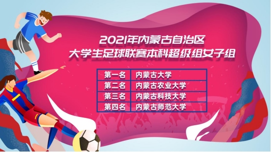 近年來(lái),內(nèi)蒙古校園足球蓬勃發(fā)展,多彩的校園足球賽事與活動(dòng)呈現(xiàn)出不斷發(fā)展的生機(jī)與活力。作為全區(qū)舉辦規(guī)模最大、參賽人數(shù)最多、覆蓋面最廣、專為大學(xué)生量身打造的校園足球賽事,大學(xué)生足球聯(lián)賽成為我區(qū)各高校學(xué)子充分展示青春活力與頑強(qiáng)斗志的重要舞臺(tái)。2021年聯(lián)賽中,共設(shè)高職校園、高職超級(jí)、本科校園和本科超級(jí)組(男、女)共7個(gè)組別。錫林郭勒職業(yè)學(xué)院、包頭輕工職業(yè)技術(shù)學(xué)院、呼和浩特民族學(xué)院分別獲得高職校園男子組、女子組、超級(jí)男子組冠軍;內(nèi)蒙古農(nóng)業(yè)大學(xué)奪得本科校園男子、女子組冠軍;內(nèi)蒙古科技大學(xué)、內(nèi)蒙古大學(xué)分別奪得本科超級(jí)組男子、女子組冠軍。