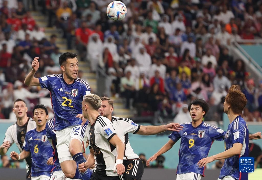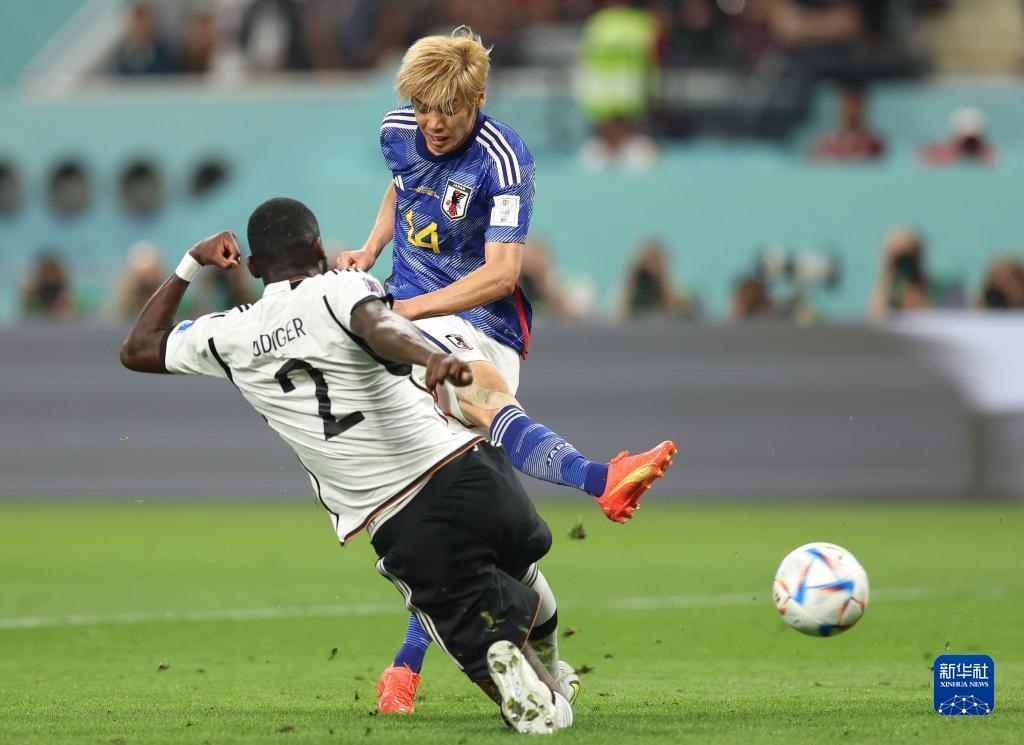 當日,在卡塔爾多哈哈里發(fā)國際體育場進行的2022卡塔爾世界杯足球賽E組比賽中,日本隊以2比1戰(zhàn)勝德國隊。