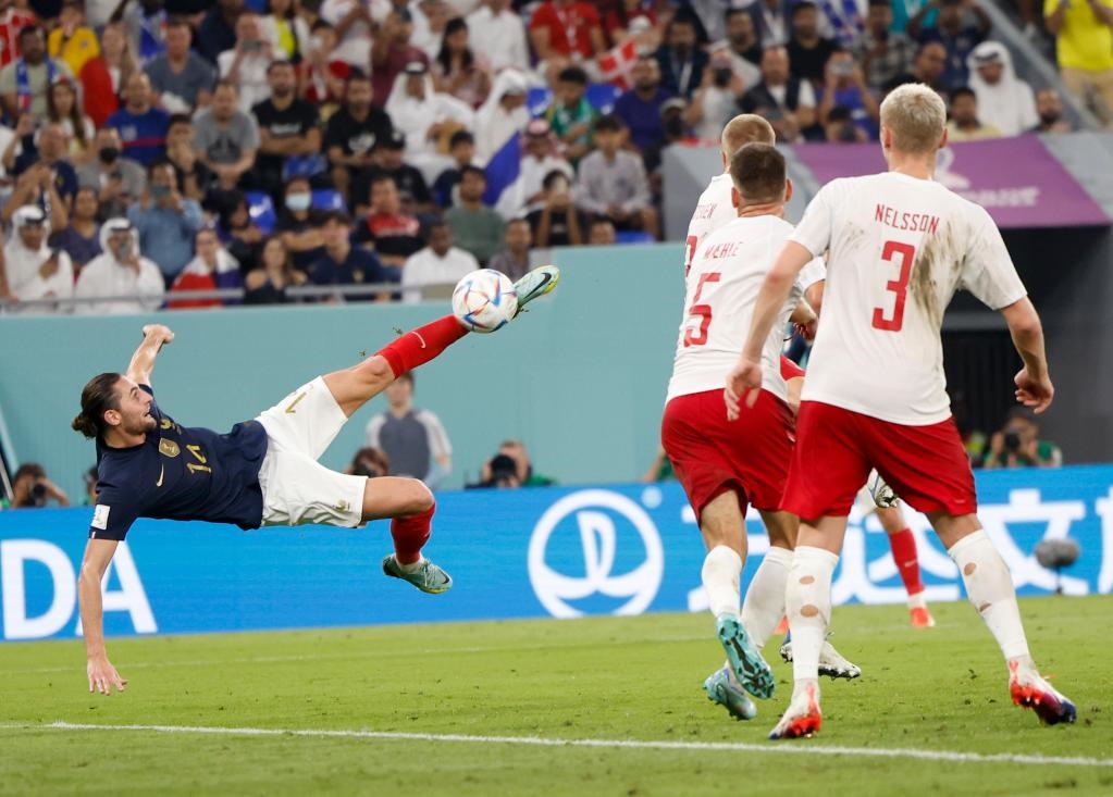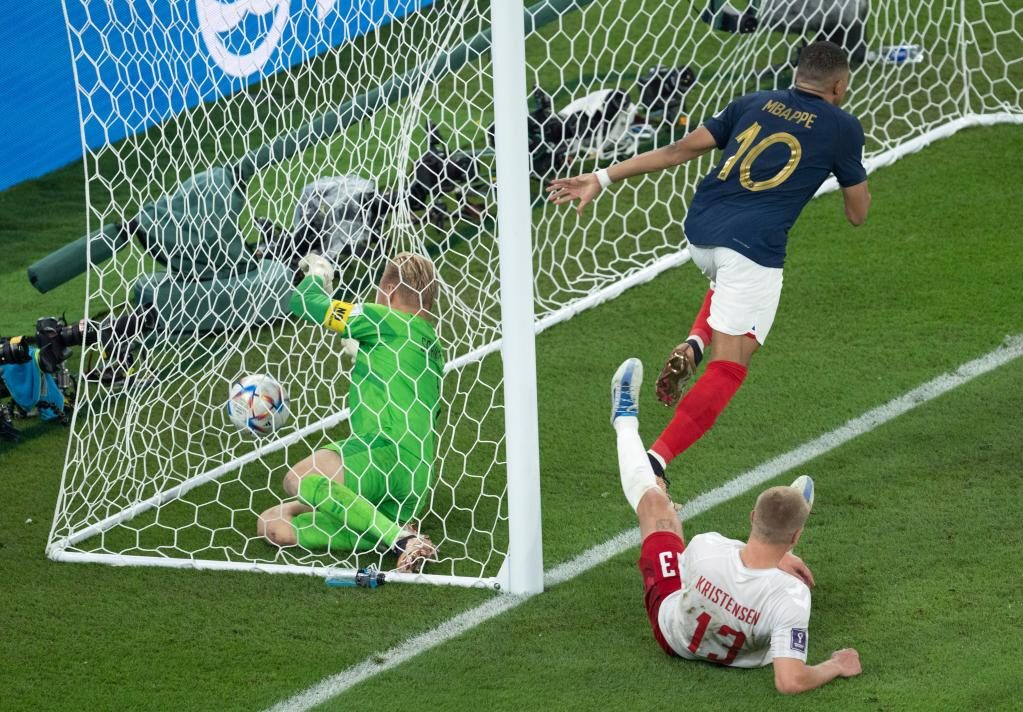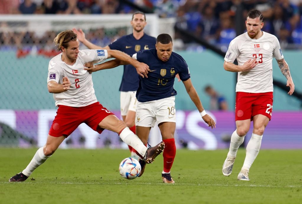 新華社多哈11月26日電(記者岳東興、韋驊、王浩明)法國隊(duì)邊鋒姆巴佩26日晚再度展現(xiàn)頭號(hào)球星一錘定音的作用,他包辦兩球,幫助衛(wèi)冕冠軍2:1擊敗丹麥隊(duì),并成為卡塔爾世界杯第一支晉級(jí)淘汰賽的球隊(duì)。