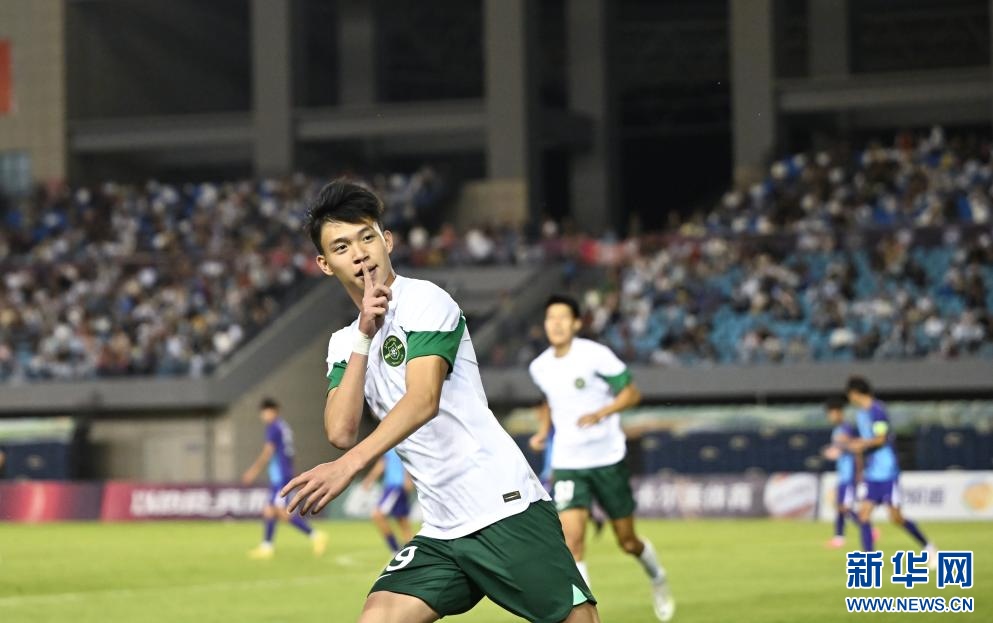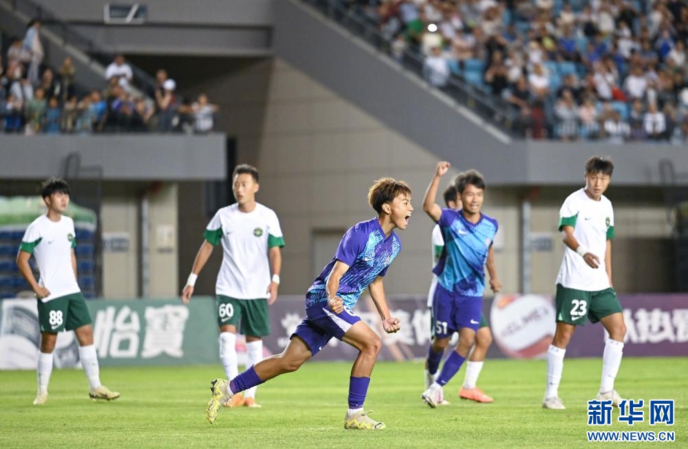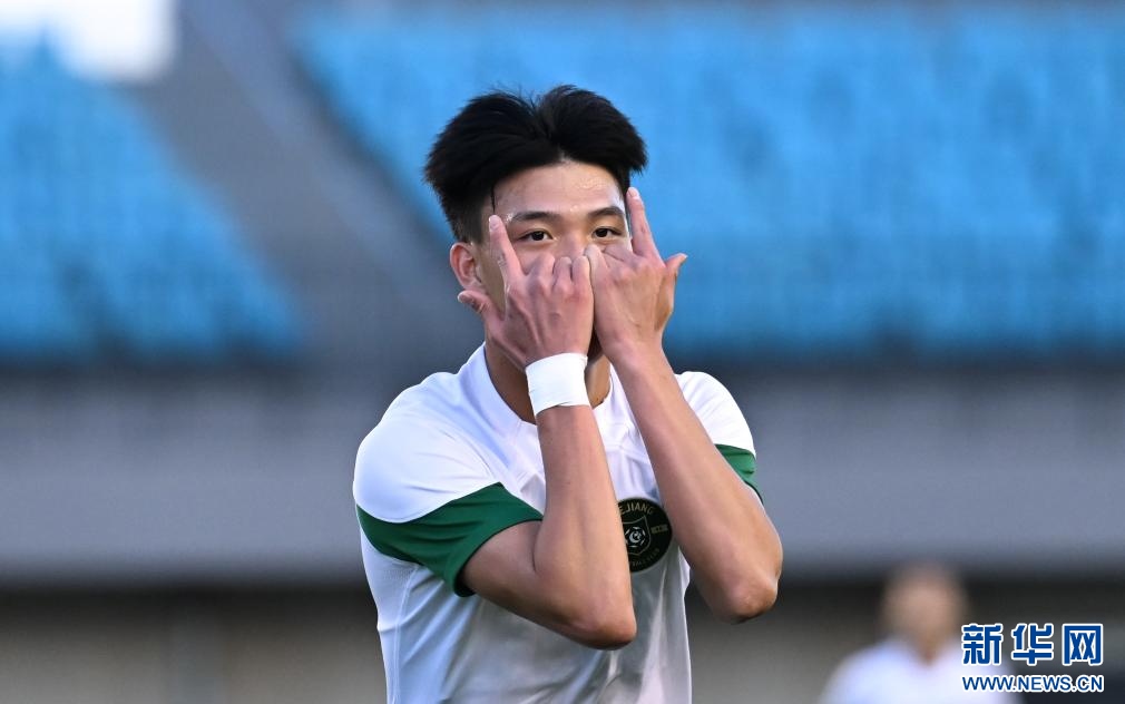 ??6月15日,浙江俱樂部U21隊球員王鈺棟在比賽中慶祝進球。