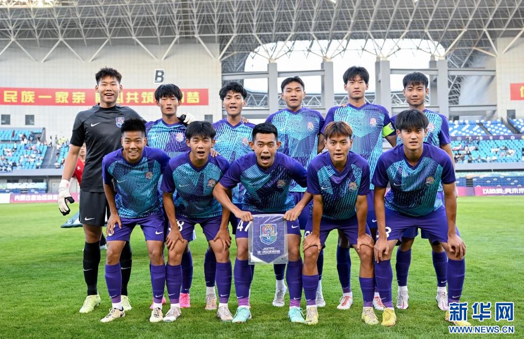 ??6月15日,天津津門虎U21隊首發(fā)球員在賽前合影。