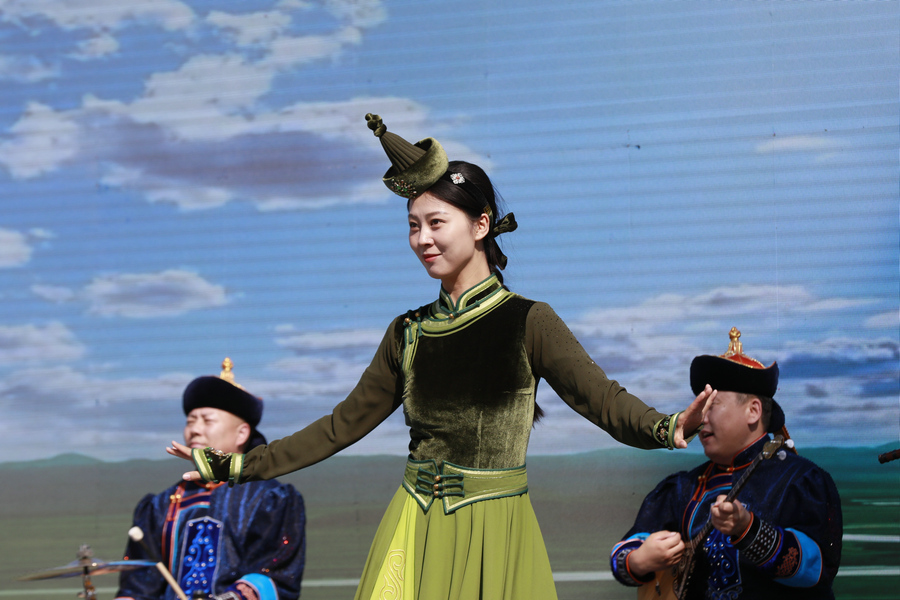烏蘭牧騎隊員現(xiàn)場表演  北疆新聞記者 張楊攝影