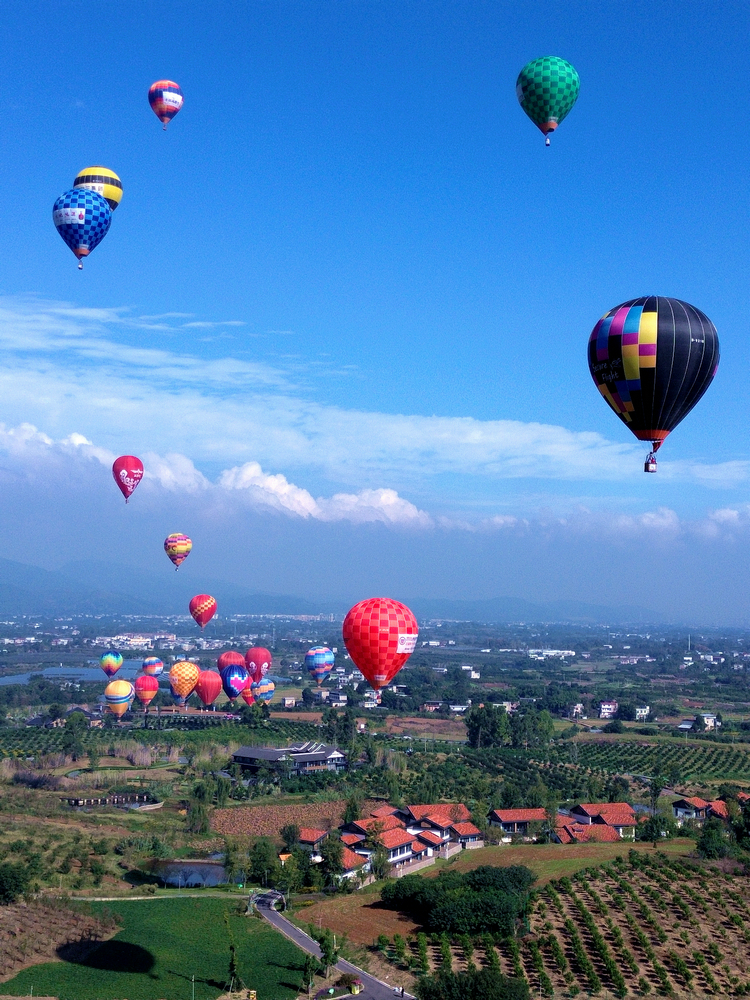 隨著開幕儀式的推進,30支熱氣球依次完成點火、充氣,在歡呼聲中緩緩升空。紅黃藍綠的熱氣球與郁郁蔥蔥的柑橘園、錯落有致的川西民居相映成趣,構成一幅絕美畫卷。據(jù)了解,此次全國熱氣球精英賽(四川金堂站)作為活動核心賽事,將在10月15日-19日期間開展游蕩華爾茲、定點投靶、肘形飛行等10余項專業(yè)競技項目,最讓人期待的是本次賽事將熱氣球飛躍龍泉山作為了長距離飛行的競賽科目,這將是熱氣球首次飛越龍泉山。屆時,參賽選手在比賽的同時還可以在空中觀賞龍泉山脈、千里沱江、絕美古剎等景觀。