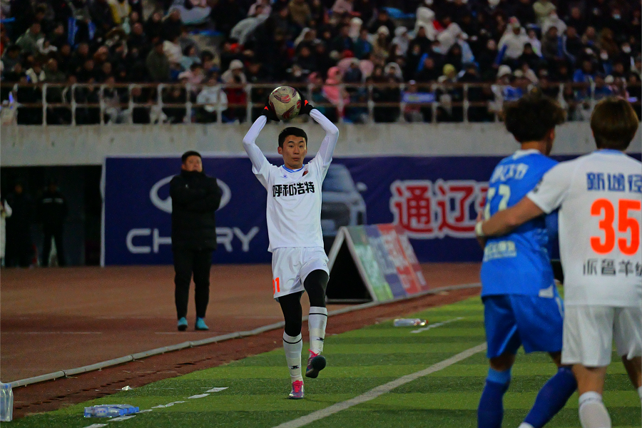 比賽伊始,兩隊直接開啟高速對抗模式,攻防節(jié)奏緊湊,轉(zhuǎn)換效率拉滿,為現(xiàn)場4萬余觀眾呈現(xiàn)了開局即高潮的對決。雙方輪番發(fā)起高強度攻勢,給對方球門制造實質(zhì)性威脅,呼和浩特隊小組賽表現(xiàn)亮眼的16號孟克特爾文聚集中路攻堅,31號外援馬庫斯則鎮(zhèn)守左路策應(yīng),左路突破加中路沖擊向通遼隊禁區(qū)施壓,然而未能將攻勢轉(zhuǎn)化為進球,兩隊以0:0的比分進入中場休息。