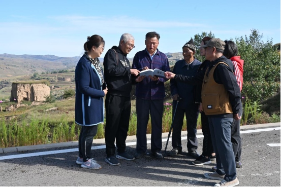 為了助推清水河縣全力推進長城國家文化公園項目建設(shè),呼和浩特市長城科普學(xué)會會員們到達馬頭山下的小元峁段明長城、川峁村鴻門口馬市遺址、水泉鎮(zhèn)紅(鴻)門口地下長城博物館后,顧不得旅途勞頓和登山困乏,立即開展考察工作、拍照、察看、比對、討論,將學(xué)會出版的《長城烽火》《中國歷代長城詩大全》《情系長城》等書籍贈送給水泉鎮(zhèn)政府,為智庫專家高振清贈送聘書,聽他講解鴻門口的歷史。