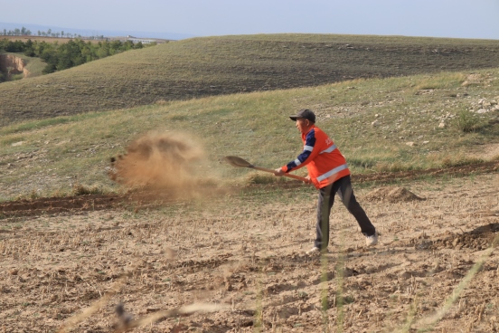 邊墻壕村是個(gè)小村莊,在村口遇見一對(duì)夫婦正在播種,據(jù)介紹全村現(xiàn)有20多戶人家四五十口人,年輕人都出去打工了,剩下些村民老人居多。讓我們?cè)俅伟宴R頭對(duì)準(zhǔn)邊墻下春播的百姓。