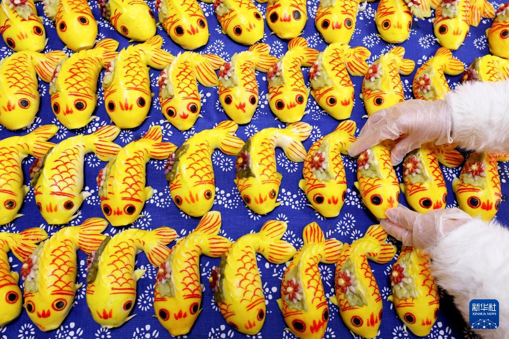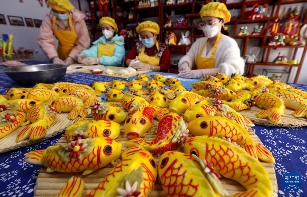 1月13日,山東省棗莊市龍山路街道居民在制作傳統(tǒng)“面魚”。新華社發(fā)(孫中喆 攝)