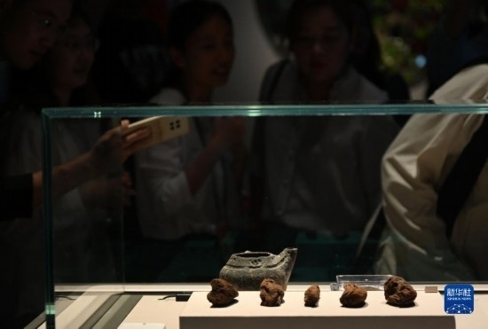 9月1日,嘉賓參觀浙江余姚田螺山遺址出土的人工種植茶樹根。