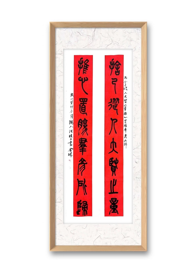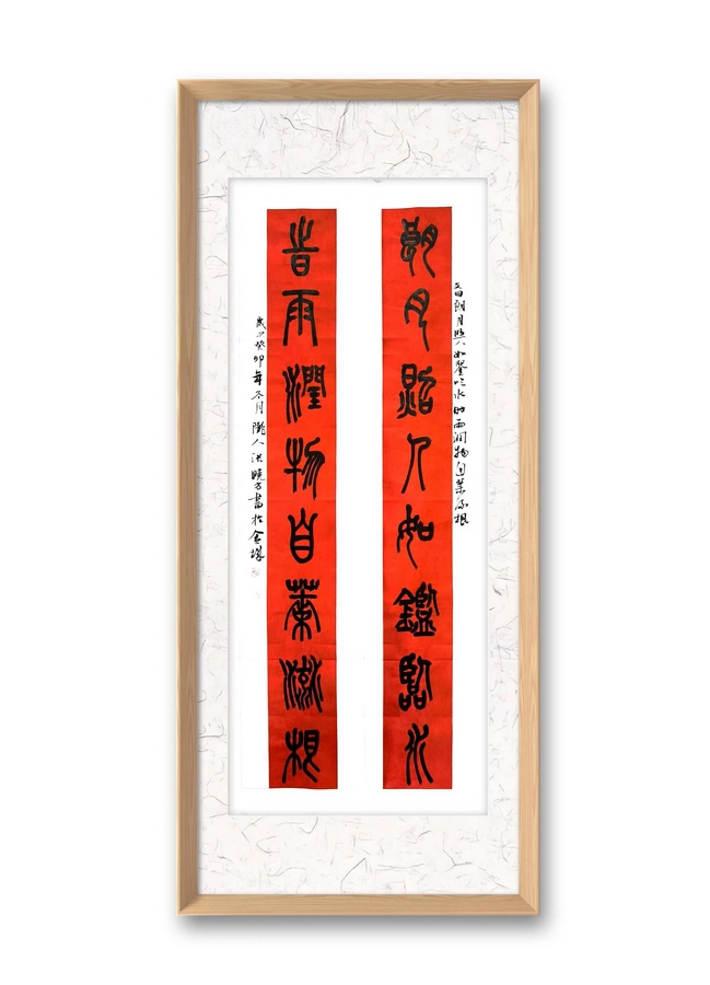 張小方先生在臨古取經(jīng)的同時(shí),也進(jìn)行了大量的臨創(chuàng)轉(zhuǎn)換,以他擅長的楹聯(lián)形式創(chuàng)作了很多優(yōu)秀作品,他筆下的石鼓文楹聯(lián)不僅保留了傳統(tǒng)文化的韻味,更融入了自己的藝術(shù)感悟和用筆特點(diǎn)。他的作品筆力雄健,氣韻生動(dòng),既有古人的神韻,又有今人的情懷。(完)