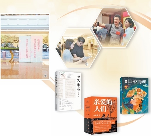 圖①:第九次全國青創(chuàng)會會場一角。圖②:參會代表在看會議議程。圖③:作家們在會場合影留念。以上圖片均為中國作協(xié)提供