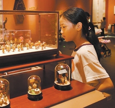 游客在中國(guó)大運(yùn)河非物質(zhì)文化遺產(chǎn)展示館內(nèi)參觀(guān)。圖為新華社記者牟宇攝