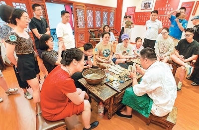 在東城區(qū)傳統(tǒng)韻味體驗之旅中,游客在吉祥大戲院國粹京劇體驗基地可以穿戴上京劇服裝道具,體驗戲曲演員化妝過程,品嘗戲曲主題“吉祥咖啡”,觀看經典京劇演出,與名師名家互動,零距離感受國粹經典的魅力;在廣譽遠中醫(yī)藥文化體驗基地,游客通過聽中醫(yī)講解、辨藥材識優(yōu)劣、手工制作香囊等多種體驗方式,感受中醫(yī)藥文化。在和平菓局京味文化體驗基地,游客可以走進煤廠胡同、小覺寺等老北京場景,體驗拉洋片、草編藝術、皮影、捏面人等傳統(tǒng)京味文化。