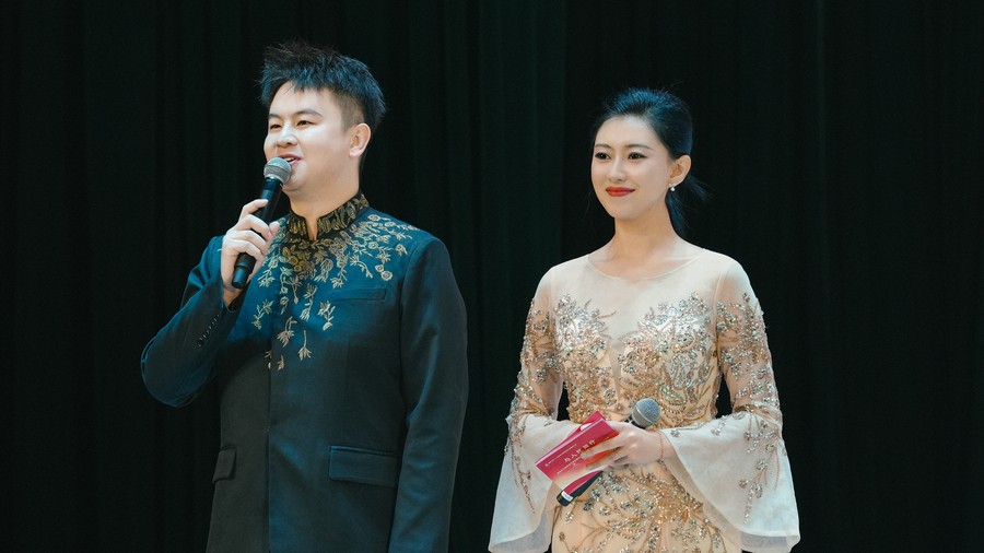 演出在舞步奔放、節(jié)奏明快的群舞《輝煌》中拉開帷幕,文藝志愿者們各展才藝,節(jié)目形式多樣,涵蓋了歌舞、小品、雜技、二人臺、呼麥等多種藝術形式。相聲《開心一刻》幽默詼諧,演員妙語連珠,引得觀眾笑聲不斷;小品《一路風情走青城》聚焦日常點滴,用接地氣的故事展現(xiàn)呼市新風貌,讓人倍感親切;歌曲《請到草原來》《歌在飛》《歌游內蒙古》,文藝志愿者們用嘹亮歌聲傳遞對家鄉(xiāng)、對祖國的熱愛;二人臺對唱《掛起紅燈拜新年》、呼麥《馬群贊》飽含深情;藝體表演《武動乾坤》、雜技《鍋碗瓢盆交響曲》創(chuàng)意十足,現(xiàn)場驚嘆聲此起彼伏;獨舞《雄鷹》以剛勁的肢體語言,詮釋鷹擊長空磅礴氣勢;《舞蹈美草》用輕盈的舞步展現(xiàn)原野的律動;最后,全體演員與觀眾齊聲合唱《我的祖國》,將演出推向最高潮。精彩的表演贏得了現(xiàn)場400多名觀眾的陣陣掌聲和歡呼聲,氣氛熱烈非凡。