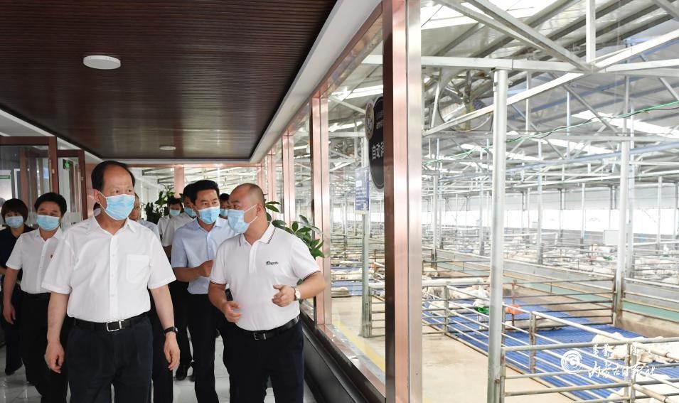 8月18日,石泰峰書記在巴彥淖爾市五原縣金草原現(xiàn)代肉羊標(biāo)準(zhǔn)化養(yǎng)殖園區(qū),了解產(chǎn)業(yè)扶貧情況。內(nèi)蒙古日?qǐng)?bào)記者 袁永紅 攝