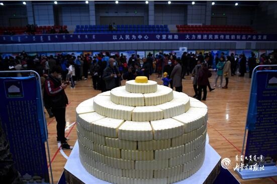 獲得“大世界基尼斯之最”的“浩乳德(拼接)——禮儀奶酪盤”。內(nèi)蒙古日?qǐng)?bào)記者 韓卿立 攝