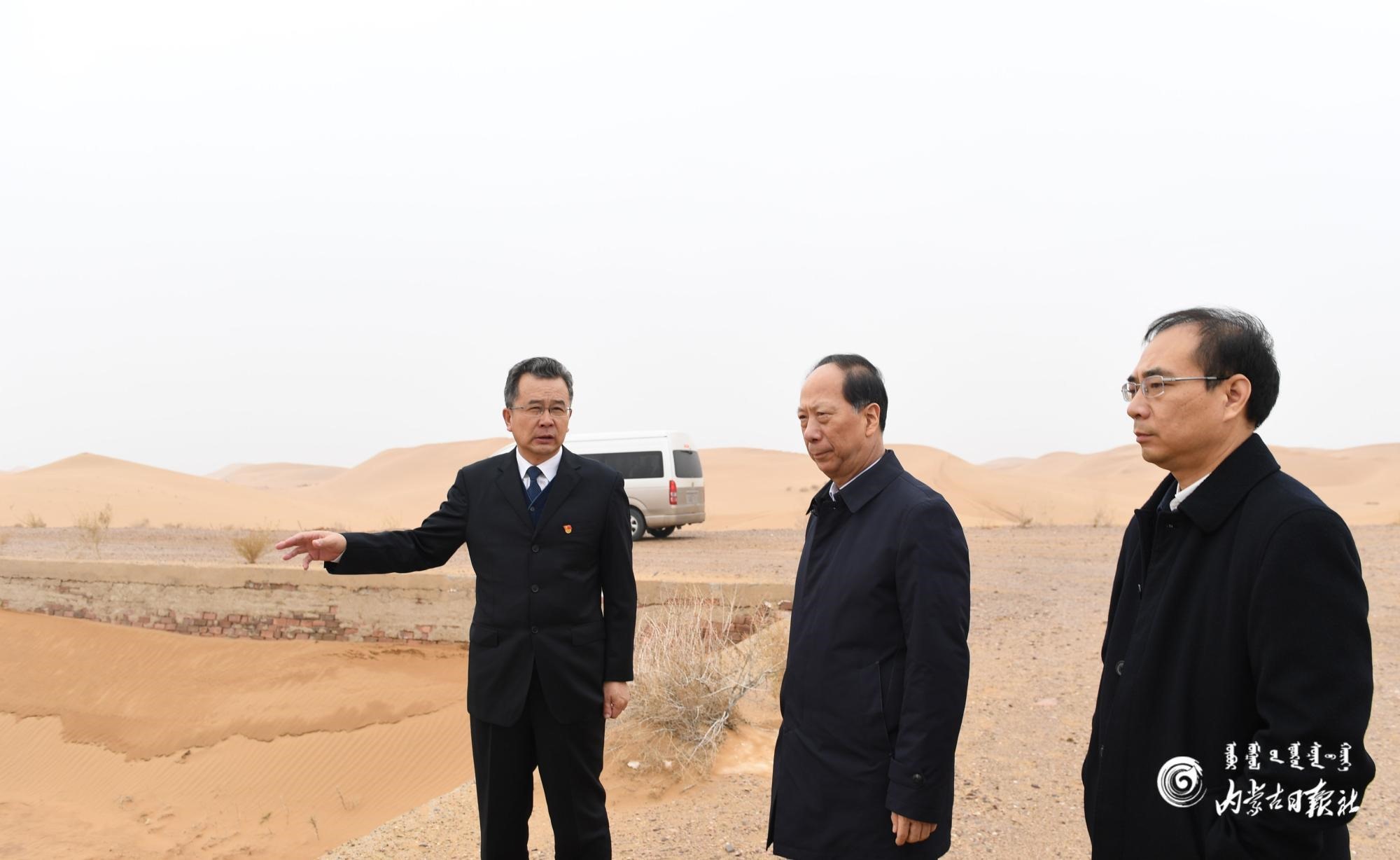 11月24日,自治區(qū)黨委書記、人大常委會(huì)主任石泰峰來到阿拉善左旗實(shí)地察看晾曬池廢水底泥處置情況。內(nèi)蒙古日?qǐng)?bào)記者 袁永紅攝