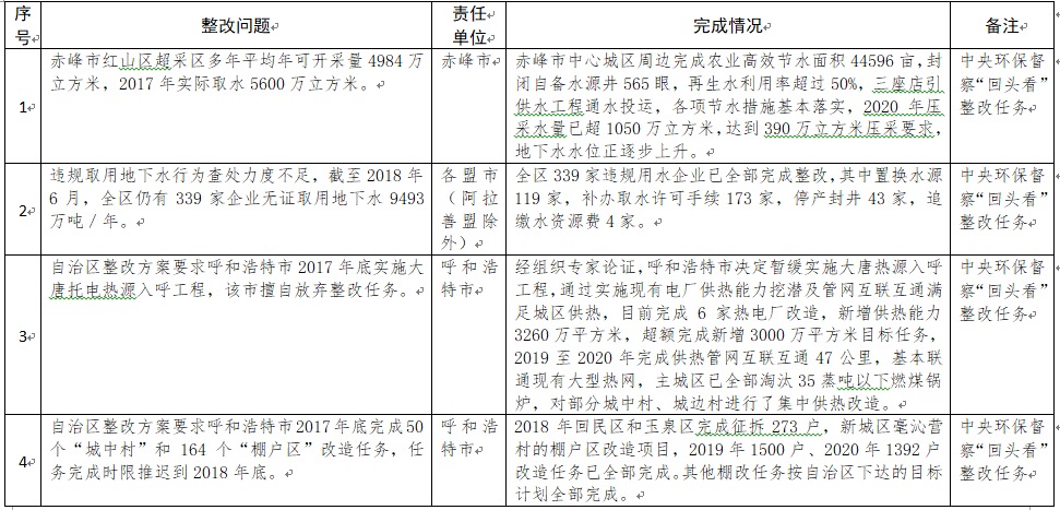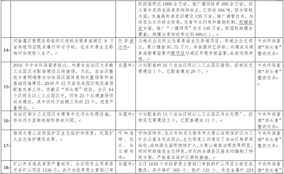 中央環(huán)境保護(hù)督察以來,自治區(qū)各級黨委政府及相關(guān)部門高度重視反饋意見整改工作,貫徹落實(shí)習(xí)近平生態(tài)文明思想的自覺性和主動性顯著增強(qiáng),采取強(qiáng)有力措施積極推動整改工作,整改工作取得階段性成果。近期部分整改任務(wù)已通過自治區(qū)相關(guān)委辦廳局驗(yàn)收,現(xiàn)予以公示,公示期2021年2月5日至2月9日,未提出異議的整改任務(wù)給予銷號(聯(lián)系電話:0471-4632171)。