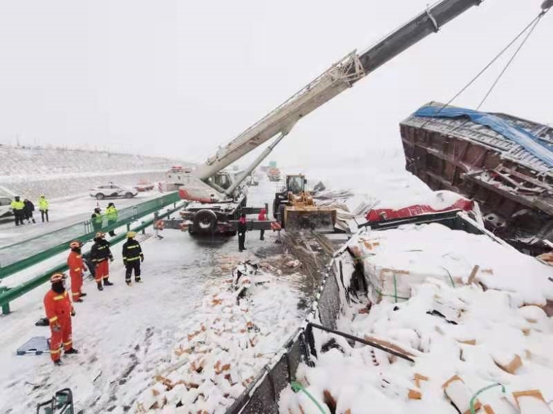 記者當(dāng)晚從內(nèi)蒙古自治區(qū)應(yīng)急管理廳以及烏海市有關(guān)部門(mén)了解到,事發(fā)時(shí),1輛重型半掛牽引車因雨雪天氣道路結(jié)冰發(fā)生側(cè)滑,致使后方行駛的另一輛重型半掛車采取措施不及發(fā)生碰撞,繼而引發(fā)多車連環(huán)相撞,致3死2傷。事故發(fā)生后,烏海市公安、消防、交警等部門(mén)立即趕赴現(xiàn)場(chǎng)展開(kāi)救援工作。由于部分大貨車車頭后部天然氣儲(chǔ)罐破損發(fā)生泄漏,給現(xiàn)場(chǎng)處置救援帶來(lái)一定難度。消防部門(mén)通過(guò)破拆救援,成功將傷者抬至安全地帶,移交給現(xiàn)場(chǎng)120醫(yī)護(hù)人員緊急送往就近醫(yī)院治療。截至當(dāng)日24時(shí)許,事故現(xiàn)場(chǎng)清理完畢。