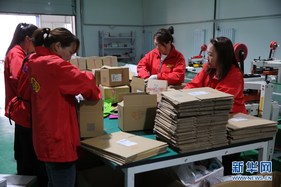 在賽罕區(qū)金河鎮(zhèn)曙光村“正北方云倉”電商平臺(tái)打包車間,工作人員正在分貨裝箱。新華網(wǎng) 石毅 攝