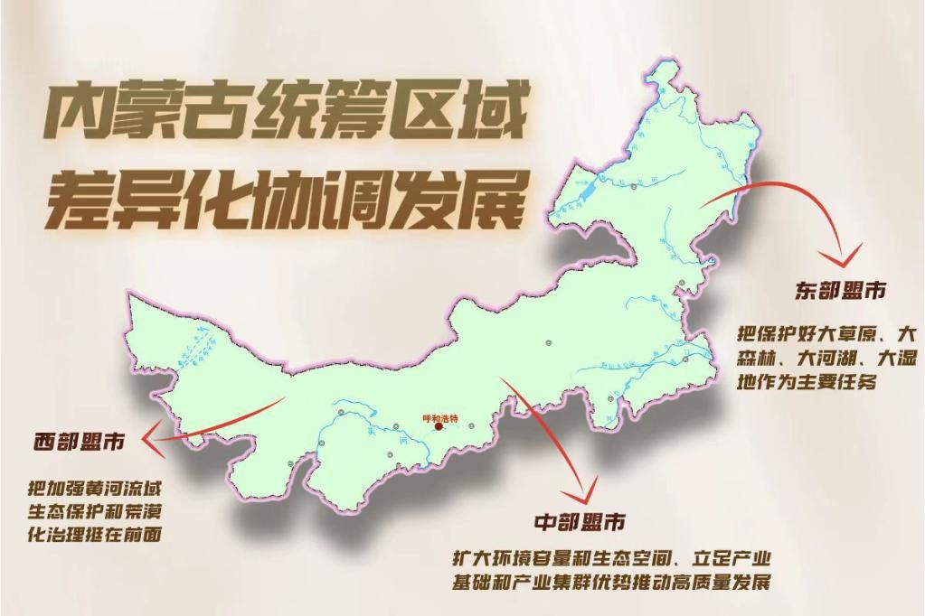 近年,內(nèi)蒙古按照主體功能區(qū)定位統(tǒng)籌區(qū)域差異化協(xié)調(diào)發(fā)展:東部盟市把保護(hù)好大草原、大森林、大河湖、大濕地作為主要任務(wù);中部盟市擴(kuò)大環(huán)境容量和生態(tài)空間、立足產(chǎn)業(yè)基礎(chǔ)和產(chǎn)業(yè)集群優(yōu)勢推動高質(zhì)量發(fā)展;西部盟市把加強(qiáng)黃河流域生態(tài)保護(hù)和荒漠化治理挺在前面。