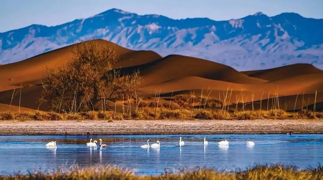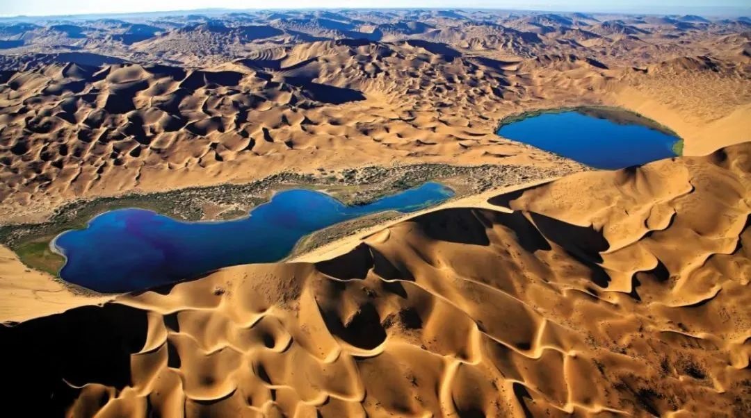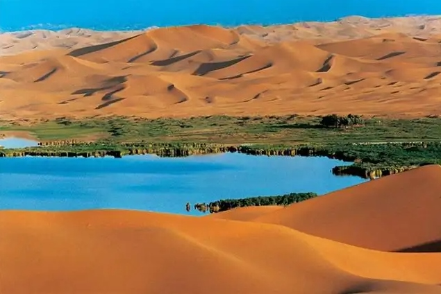 巴丹吉林沙漠年降水量不足40毫米,但是沙漠中的湖泊竟然多達100多個。高聳入云的沙山,神秘莫測的鳴沙,靜謐的湖泊、濕地,構(gòu)成了巴丹吉林沙漠獨特的迷人景觀,于2005年被《中國國家地理》雜志評為中國最美麗的沙漠,每年吸引了上萬名國內(nèi)外游客前來觀光。