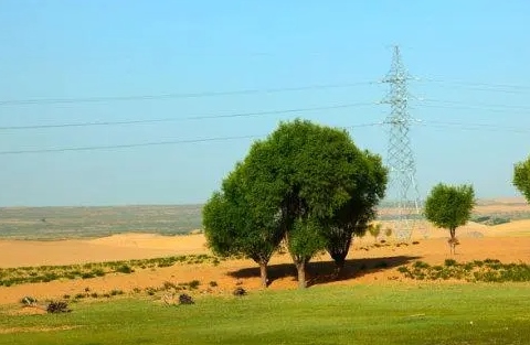 沙海披綠裝,荒漠變綠洲。