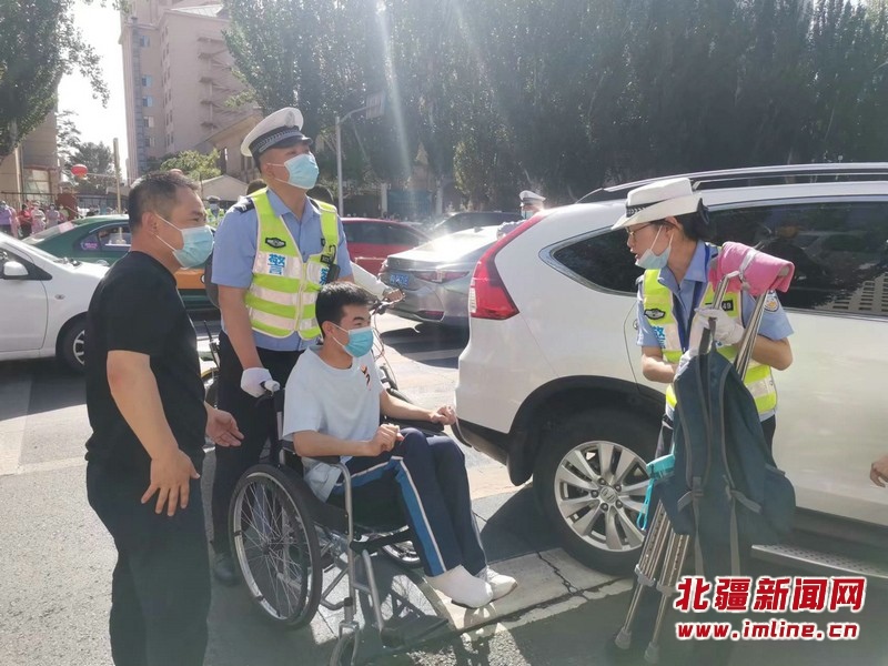 現(xiàn)場(chǎng)最讓感動(dòng)的是,一位腳扭傷的考生,在兩名交警的幫助下坐上輪椅進(jìn)入考場(chǎng)?!坝辛怂麄兊膸椭瑴p少了我們的焦慮,心情輕松了很多,而且今天早早就來(lái)到了考場(chǎng)?!笨忌议L(zhǎng)介紹,昨天看考場(chǎng)時(shí),交警同志得知孩子的腳扭傷后,今天特意趕來(lái)護(hù)送學(xué)生進(jìn)入考場(chǎng)。