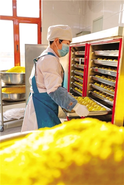 2019年,為提升“造血”功能,壯大嘎查集體經(jīng)濟(jì),在前德門蘇木黨委政府的積極引導(dǎo)下,扎嘎斯臺(tái)嘎查“兩委”班子和駐村工作隊(duì)因地制宜,聚焦婦女群體和嘎查留滯勞動(dòng)力,成立了黏豆包生產(chǎn)加工車間,并注冊(cè)“佰吉納”牌商標(biāo),以線上線下零售、批發(fā)相結(jié)合的方式,讓黏豆包有了穩(wěn)定的銷售渠道。同時(shí),借助回頭客的推薦和微信朋友圈的宣傳,黏豆包銷量持續(xù)增加,年銷售達(dá)到了2.5萬(wàn)斤。