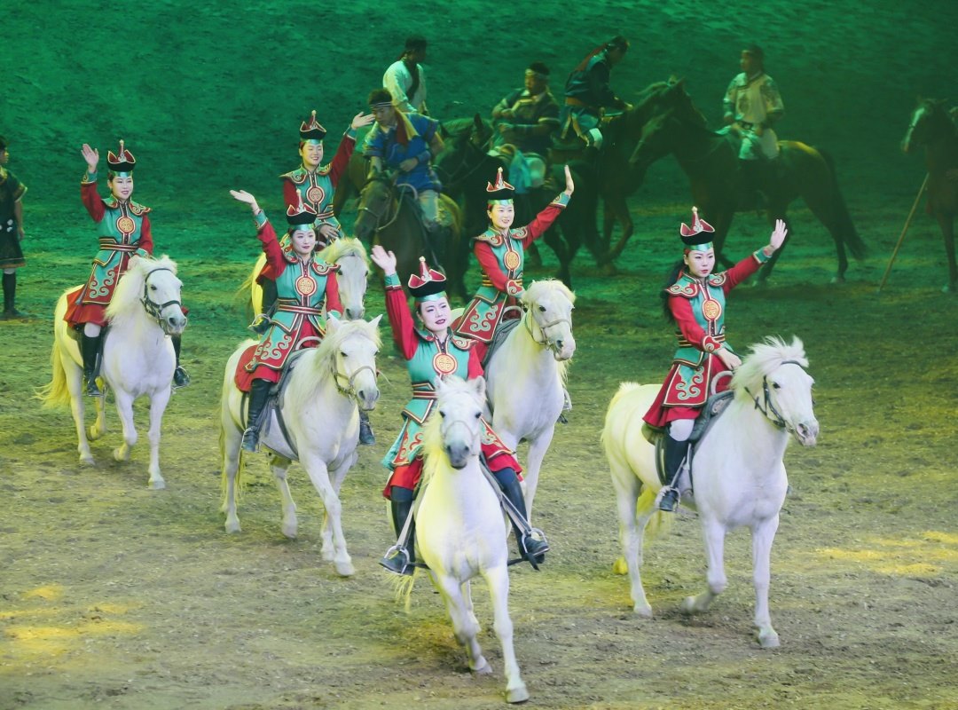 《千古馬頌》既具奪人眼球的觀賞性,又有直指人心的文化內(nèi)涵;既是一項(xiàng)填補(bǔ)內(nèi)蒙古馬文化駐場(chǎng)演出空白的旅游產(chǎn)品,又是一部挖掘蒙古民族與馬深厚情感的藝術(shù)史詩(shī),成為近年來提升內(nèi)蒙古自治區(qū)文化產(chǎn)業(yè)核心競(jìng)爭(zhēng)力、展現(xiàn)民族融合團(tuán)結(jié)奮斗的一部?jī)?yōu)秀作品。(攝影/內(nèi)蒙古日?qǐng)?bào)·草原全媒記者郭偉偉)