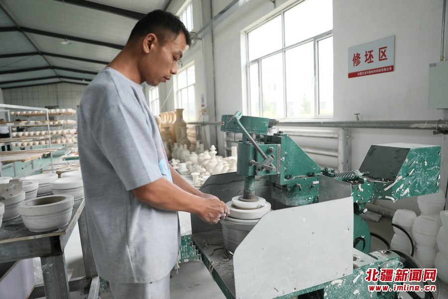 7月26日,內(nèi)蒙古興和縣龍興陶瓷產(chǎn)業(yè)園,工作人員正在加工制作陶瓷產(chǎn)品。
