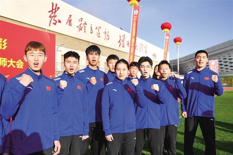 即將參加第一屆全國(guó)學(xué)生(青年)運(yùn)動(dòng)會(huì)的我區(qū)運(yùn)動(dòng)員在動(dòng)員大會(huì)上高呼“團(tuán)結(jié)拼搏、勇創(chuàng)佳績(jī)”
