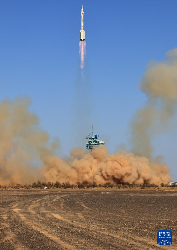 10月26日11時(shí)14分,搭載神舟十七號(hào)載人飛船的長(zhǎng)征二號(hào)F遙十七運(yùn)載火箭在酒泉衛(wèi)星發(fā)射中心點(diǎn)火發(fā)射。約10分鐘后,神舟十七號(hào)載人飛船與火箭成功分離,進(jìn)入預(yù)定軌道,航天員乘組狀態(tài)良好,發(fā)射取得圓滿(mǎn)成功。新華社記者 任軍川 攝