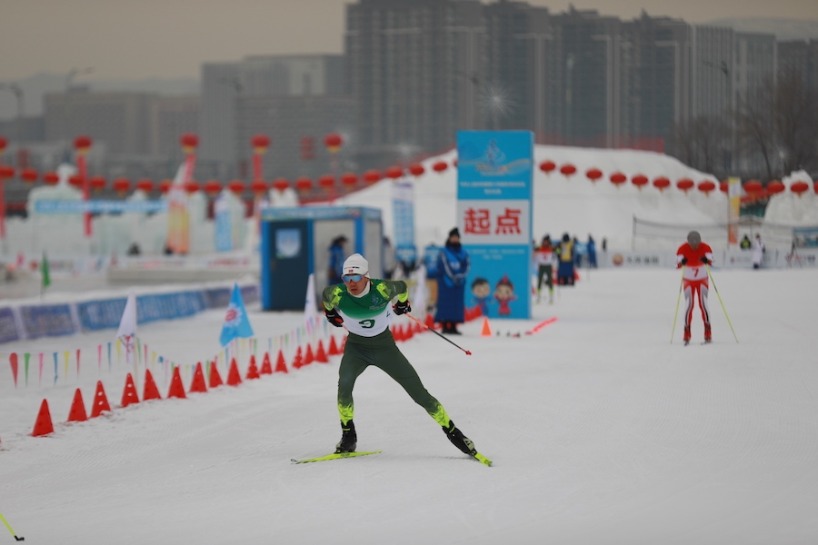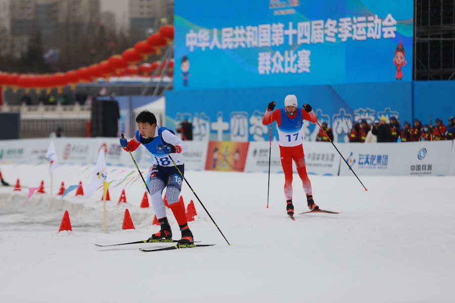 1月13日,“十四冬”群眾比賽在呼和浩特東河冰場(chǎng)開(kāi)賽。在上午進(jìn)行的男子越野滑雪4*1.5km預(yù)賽中,內(nèi)蒙古代表隊(duì)獲得小組第二。